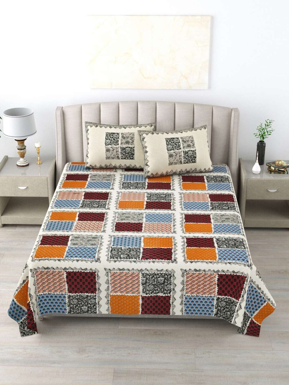100% Pure Cotton Traditional Printed Bedsheet for Double Bed King Size Bedsheet with 2 Pillow Covers